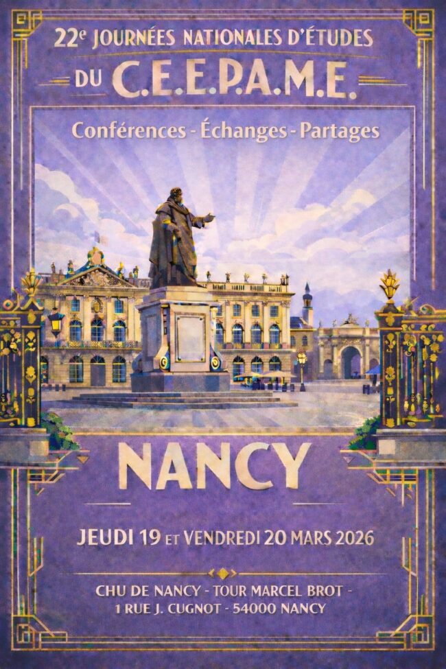 PROGRAMME DES 22èmes JOURNÉES NATIONALES D'ÉTUDES DU CEEPAME Ces journées se dérouleront à l’École de Puériculture du CHRU de NANCY Tour Marcel BROT, 1 rue J. CUGNOT 54000 Nancy JEUDI 19 MARS 2026 9h00 Accueil des participants 9h30 Ouverture de la journée par la présidence, présentation du conseil d’administration et des invités 10h La…